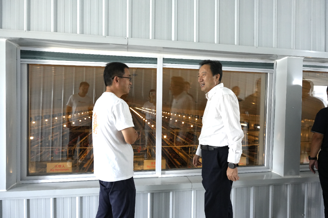 調(diào)研組隨后實地走訪蛋雞養(yǎng)殖舍,朱總介紹道,目前蛋雞存欄量穩(wěn)定在60萬羽,年產(chǎn)蛋量過萬噸,智能化管理大大提高蛋雞成活率,遠超傳統(tǒng)養(yǎng)殖水平。隨后,白書記詢問企業(yè)二期工程進展,并對此表示期待,鼓勵企業(yè)加快建設進度,早日形成更大產(chǎn)能、發(fā)揮更強帶動作用。他強調(diào),畜牧業(yè)是保障民生供給、推動鄉(xiāng)村產(chǎn)業(yè)振興的重要支柱,易豐農(nóng)業(yè)要持續(xù)發(fā)揮示范引領作用,進一步強化科技支撐,優(yōu)化生產(chǎn)管理,嚴格把控產(chǎn)品質量安全,不斷提升產(chǎn)業(yè)競爭力;相關部門要主動對接企業(yè)需求,做好政策扶持與服務保障,共同推動全區(qū)畜牧業(yè)高質量發(fā)展。