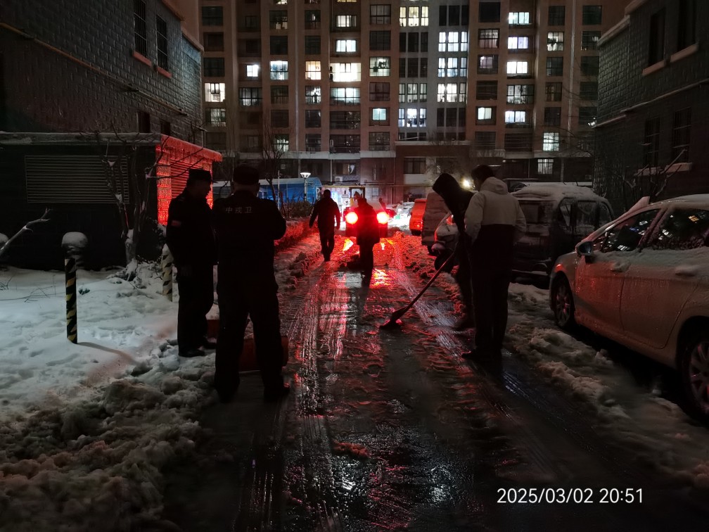 飛雪增寒意,清雪暖人心。3月2日,一場(chǎng)突如其來(lái)的春雪為大地披上了素白銀裝。鵝毛般的雪花紛紛揚(yáng)揚(yáng)下了一整天,道路上的積雪深達(dá)十余厘米,道路濕滑,臺(tái)階結(jié)冰,給出行埋下了安全隱患。面對(duì)極端天氣考驗(yàn),長(zhǎng)田實(shí)業(yè)各業(yè)態(tài)以“雪”為令,迅速響應(yīng),投入到這場(chǎng)與冰雪的“戰(zhàn)斗”中。大家不畏嚴(yán)寒,齊心協(xié)力用實(shí)際行動(dòng)展現(xiàn)長(zhǎng)田人的強(qiáng)大凝聚力和高效行動(dòng)力。