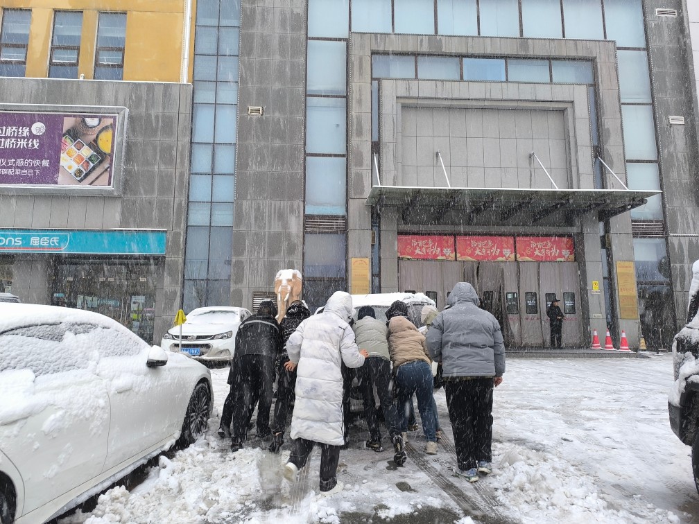 華百電影文化廣場(chǎng)外,大雪依舊飄飄灑灑、尚未停歇的時(shí)候,華百商管和物業(yè)人員就已經(jīng)踏上了清掃積雪的征程。在掃雪過(guò)程中,偶遇因積雪厚重而無(wú)法前行的車輛,他們毫不猶豫地放下手中的工具,匯聚成一股強(qiáng)大的合力,齊心協(xié)力推車前行,一邊精準(zhǔn)指揮車輛,一邊奮力推動(dòng),最終成功助力車輛脫困。為防止影響車牌的錄入,物業(yè)人不懼寒冷,徒手將一個(gè)個(gè)車牌上的積雪清除,這一暖心之舉,不僅贏得了車主由衷的感激,更讓市民深切感受到了長(zhǎng)田人的溫暖與力量。