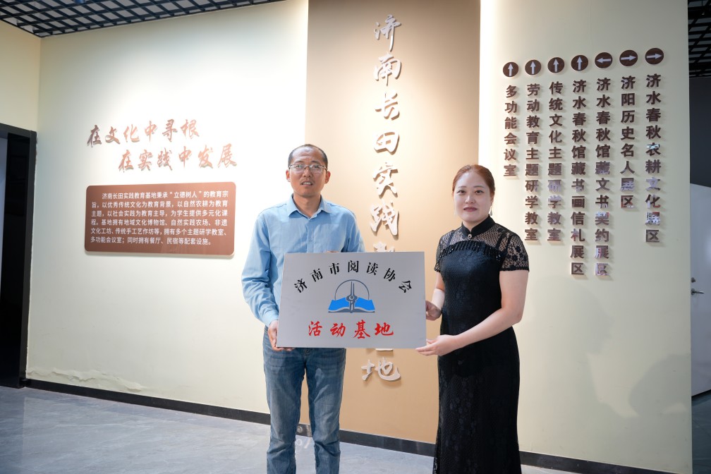 濟南市閱讀協(xié)會會長何麗亞為長田實踐教育基地授牌。長田實踐教育基地被授予“濟南市閱讀協(xié)會活動基地”的稱號,這不僅是對基地的肯定,更是對社會責任的踐行。下一步,長田實踐教育基地將繼續(xù)發(fā)揮閱讀協(xié)會活動基地的示范作用,不斷創(chuàng)新閱讀推廣活動,豐富文化內(nèi)涵,讓更多的孩子在這里找到知識的樂趣,培養(yǎng)閱讀的習慣。同時,基地也將加強與濟南市閱讀協(xié)會的合作,共同舉辦各類閱讀活動,搭建起孩子們與書籍之間的橋梁,引領(lǐng)他們走進書海,探索知識的奧秘。