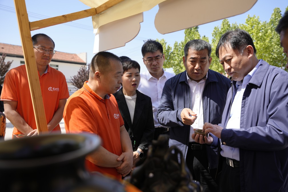 非遺展臺集中呈現(xiàn)黑陶制作、彩塑、烙畫、木版年畫等文化遺產(chǎn),領(lǐng)導(dǎo)們通過非遺傳承人的講述,感受技藝背后的歷史積淀,鼓勵非遺項目走出深閨、走向市場,融入現(xiàn)代生活,實現(xiàn)“雙創(chuàng)”發(fā)展。濟北手造展臺則匯聚黃河沿岸的民間手造精品,既有老粗布、鉤繡等傳統(tǒng)工藝,也有融入現(xiàn)代設(shè)計的黑陶文創(chuàng)產(chǎn)品,凸顯匠心與創(chuàng)新的結(jié)合。此外,還有以長田樂享超鮮蛋、烏棗、小磨香油、永慶昌熟食、肖家酥火燒等在地食材為亮點,展示了濟陽“北緯37度黃金農(nóng)業(yè)帶”的優(yōu)質(zhì)農(nóng)產(chǎn)品,成為鄉(xiāng)村振興的特色名片。活動通過場景化體驗與資源整合,進一步塑造了濟陽文旅品牌,推動區(qū)域高質(zhì)量發(fā)展。