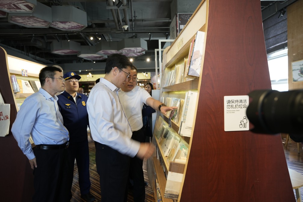 王區(qū)長(zhǎng)對(duì)華百?gòu)V場(chǎng)進(jìn)行全面視察,先后前往必勝客、智航文具、長(zhǎng)田書屋、半天妖烤魚、橫店影城等多家商戶。每到一處,他都細(xì)致詢問門店負(fù)責(zé)人假期客流趨勢(shì)、促銷活動(dòng)安排及服務(wù)保障措施,并親切與商戶代表交流,了解經(jīng)營(yíng)狀況與實(shí)際需求。在橫店影城,他特別關(guān)注節(jié)日檔期影片排片及觀影安全預(yù)案;在長(zhǎng)田書屋,他駐足良久,查看書屋的運(yùn)營(yíng)情況,強(qiáng)調(diào)商業(yè)與文化的深度融合是提升城市品質(zhì)的關(guān)鍵所在。