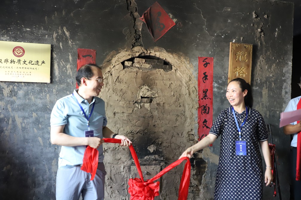 恰逢龍格窯第245次開窯儀式,師生們共同見證了黑陶作品從窯爐中誕生的瞬間。整個開窯儀式大致分成祭窯神和開窯見寶兩個環(huán)節(jié)。吉時一到,擊鼓鳴鑼,莊重的開窯納福儀式開始,凈手、敬香、祭酒……