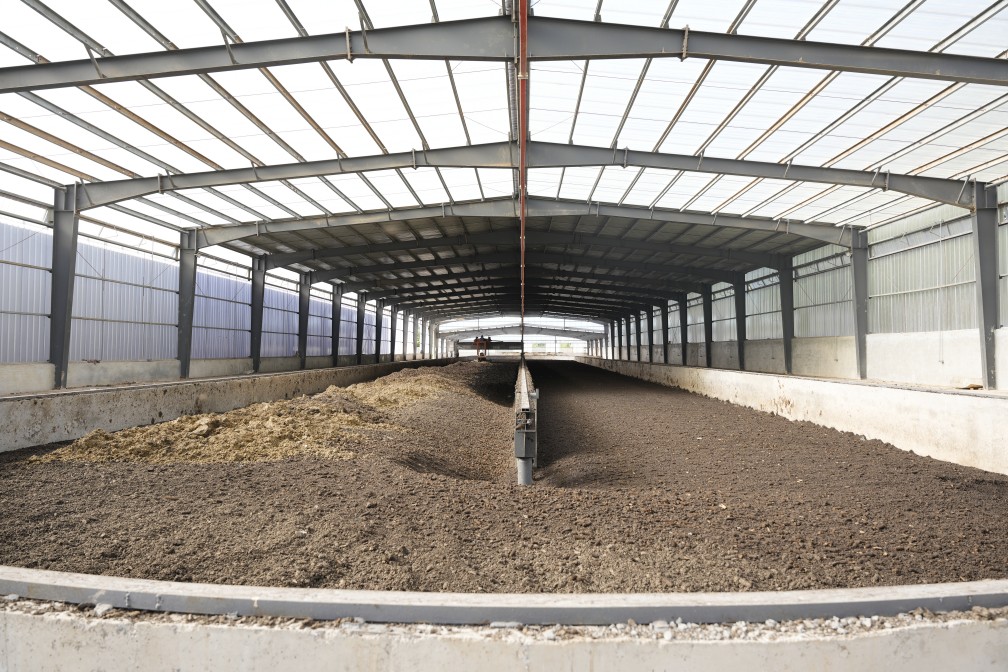 雞場(chǎng)負(fù)責(zé)人孫濤指著占地3500平米的發(fā)酵雞糞車(chē)間介紹:“你看我們這套搞法——發(fā)酵槽像炒菜一樣不停地翻堆。我們得把溫度、濕度和空氣(氧氣)都控制得剛剛好,再加上我們自己‘養(yǎng)’的一幫好使的菌種。這么一整,雞糞從臭烘烘的廢物變成能用的好肥料,時(shí)間一下子就從以前老辦法的倆月縮短到只要半個(gè)月!”他接著介紹:“發(fā)酵好的雞糞還得再搗碎、篩一篩、裝袋打包。這么處理完,原來(lái)讓人頭疼的雞糞,就真變成黑乎乎、肥力足的好有機(jī)肥了!”
