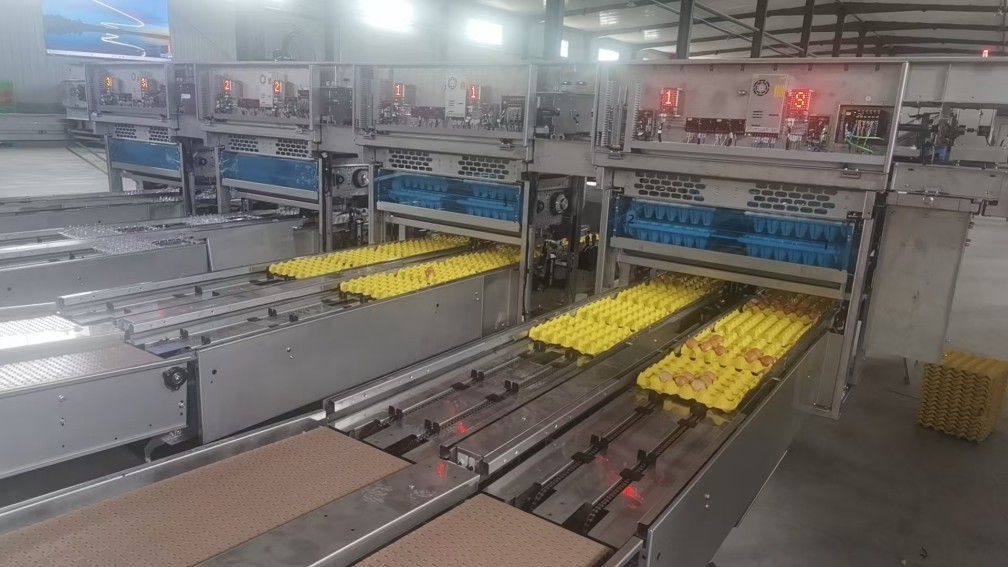 ▲標(biāo)準(zhǔn)化、智能化的雞蛋分揀設(shè)備將雞蛋按照大小、重量進(jìn)行精準(zhǔn)分類(lèi)