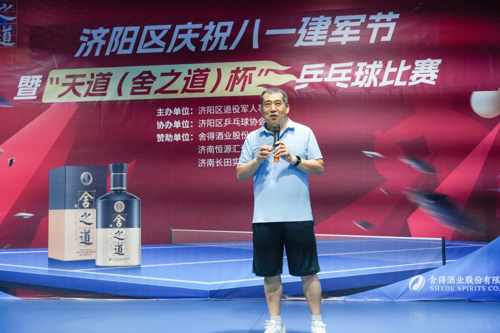 隨后,舍得酒業(yè)濟(jì)南辦事處客戶(hù)主任于磊講到,體育是活力的源泉,雙擁是我們堅(jiān)守的初心。這場(chǎng)乒乓球賽,不僅是一場(chǎng)體育競(jìng)技,更是一次重溫軍旅情誼、展現(xiàn)昂揚(yáng)風(fēng)貌的盛會(huì)。小小的銀球,傳遞著戰(zhàn)友間的深厚情誼,也映射著軍人永葆青春活力、積極樂(lè)觀的人生態(tài)度。他表示,舍得酒業(yè)也將在自身發(fā)展中,不斷弘揚(yáng)這種拼搏進(jìn)取的精神,追求卓越品質(zhì),用心釀造每一滴美酒,回饋社會(huì)各界的信任與支持。